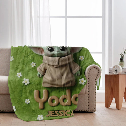 Cute Yoda - Personalized The Force Blanket - EAJBLK12002