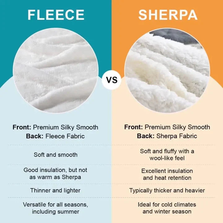 - Sherpa mimics the texture of sheep's wool, offering a plush, cozy feel that's perfect for colder weather.