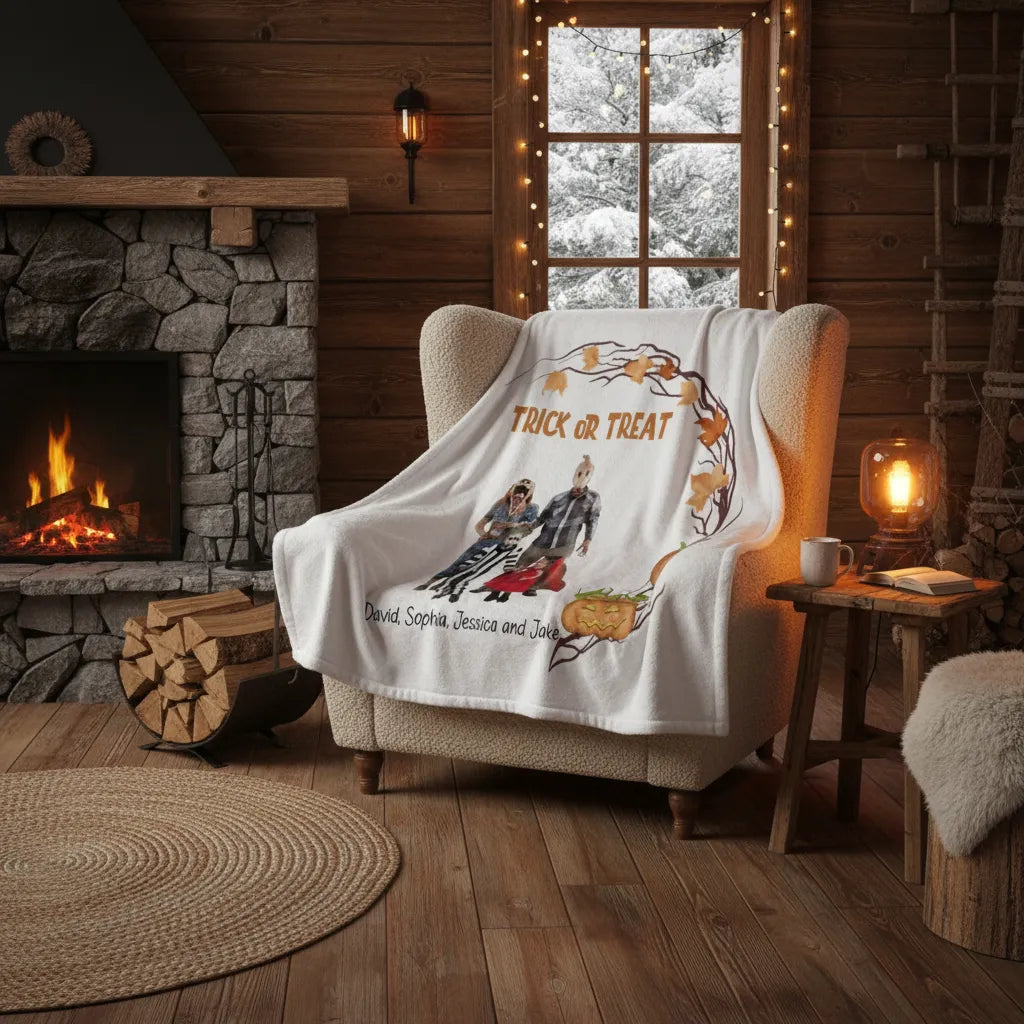 Grab your Trick or Treat - Personalized Family Hooded Blanket today! 😍